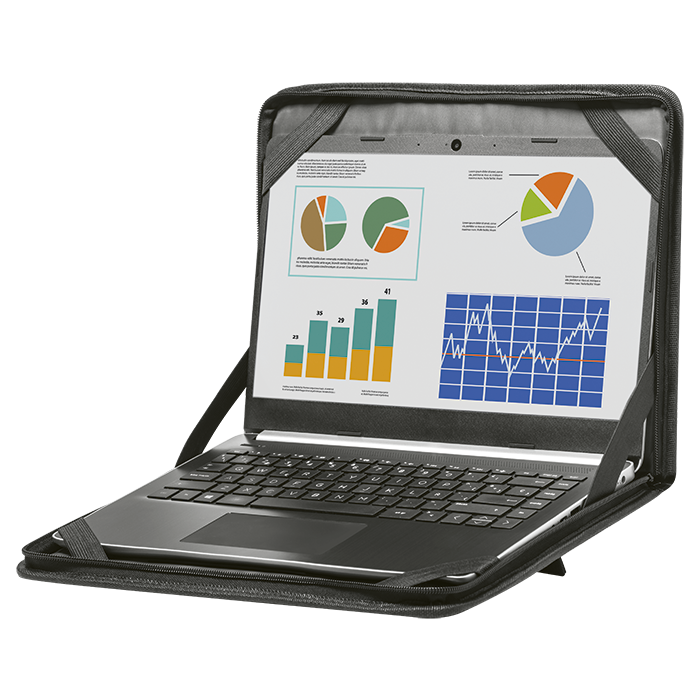 - Elastic bands and inner padding for safety during use and transport of the computer